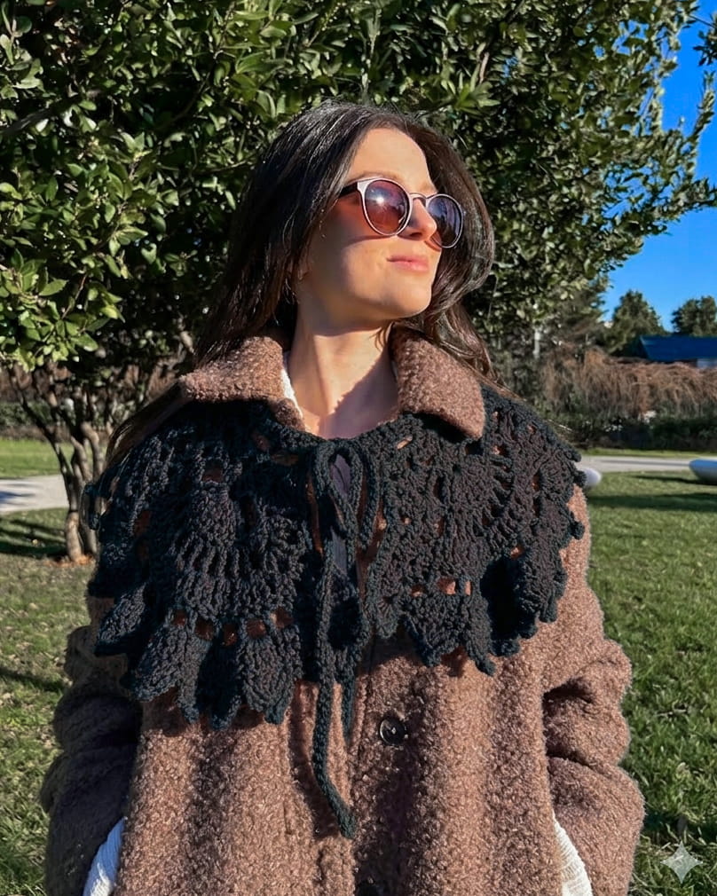 Zarif ve romantik dokusuyla öne çıkan bu el örgüsü yakalık, kombinlerinize yumuşak bir şıklık katar. %25 yün, %75 akrilik ve mohair karışımı ipliği sayesinde hem hafif hem de sıcak tutar. Siyah rengiyle sıcak, doğal ve sofistike bir görünüm sunar. Günlük kombinlerden özel anlara kadar rahatlıkla kullanılabilir.